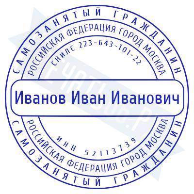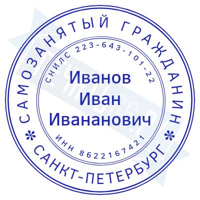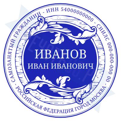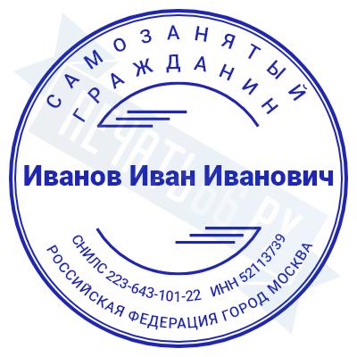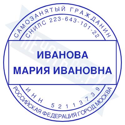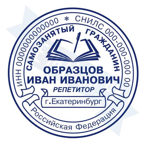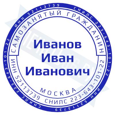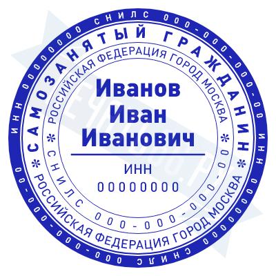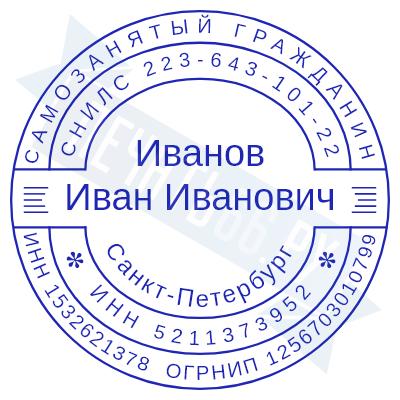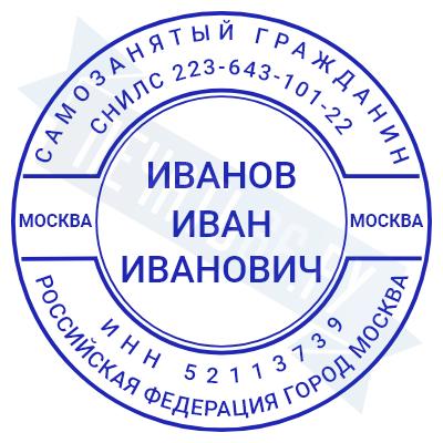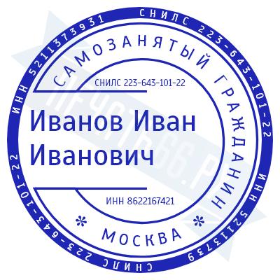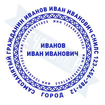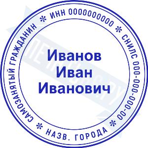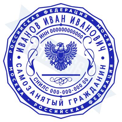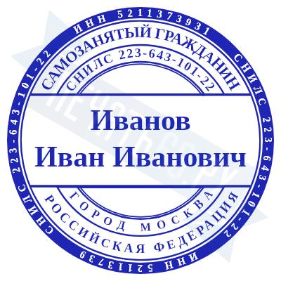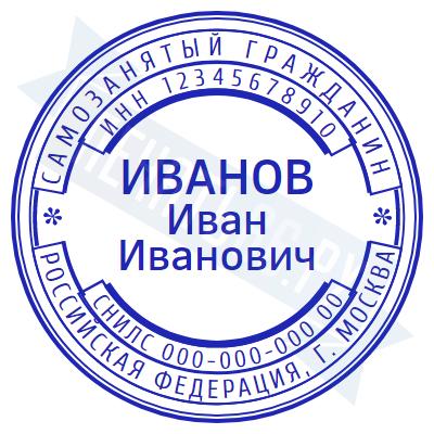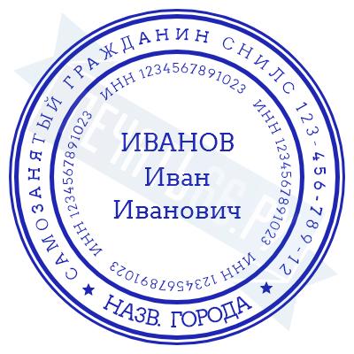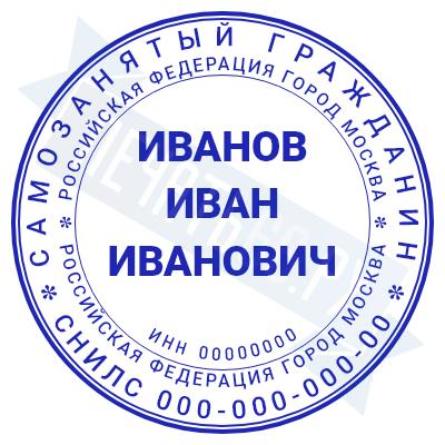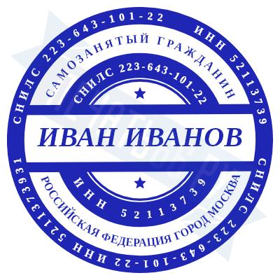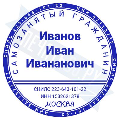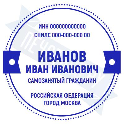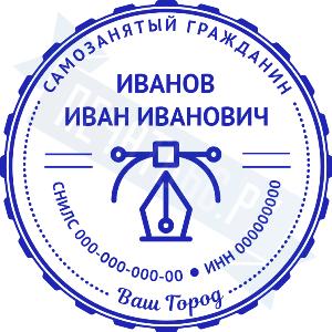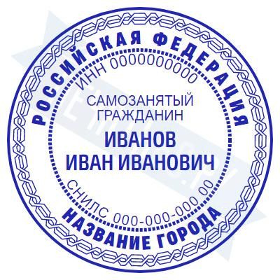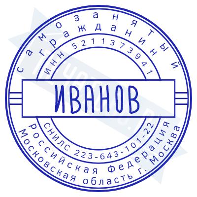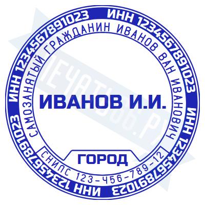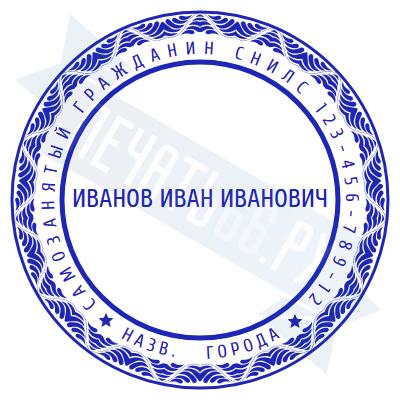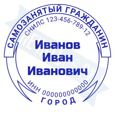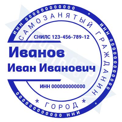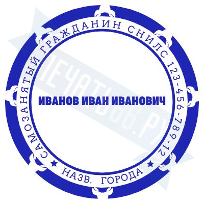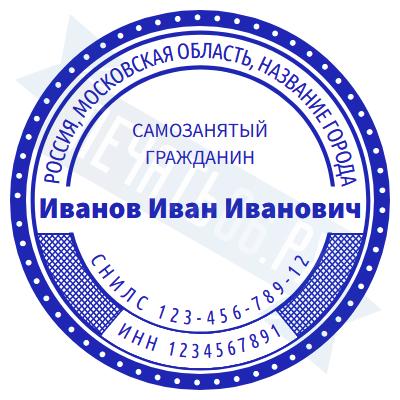 - Печать самозанятого на ручной оснастке Таблетка ЕКП42, 42мм по цене 748 рублей и еще 67 видов печатей для самозанятых